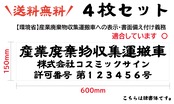 ◆隷書 4枚セット【産業廃棄物収集運搬車表示 3行】マグネットシート白0.8㎜厚+カッティング黒 150㎜-600㎜